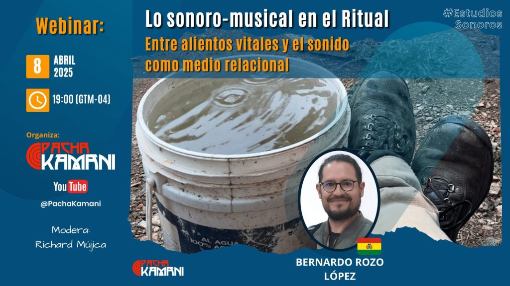 Desde el Colectivo PachaKamani, continuamos este ciclo de charlas virtuales y webinars en torno a los Estudios Sonoros, y te invitamos a participar del 7mo webinar titulado «Lo sonoro-musical en el Ritual. Entre alientos vitales y el sonido como medio relacional», donde abordaremos los vínculos entre música, sonido, percepción y ritualidad desde una perspectiva relacional y multisensorial.